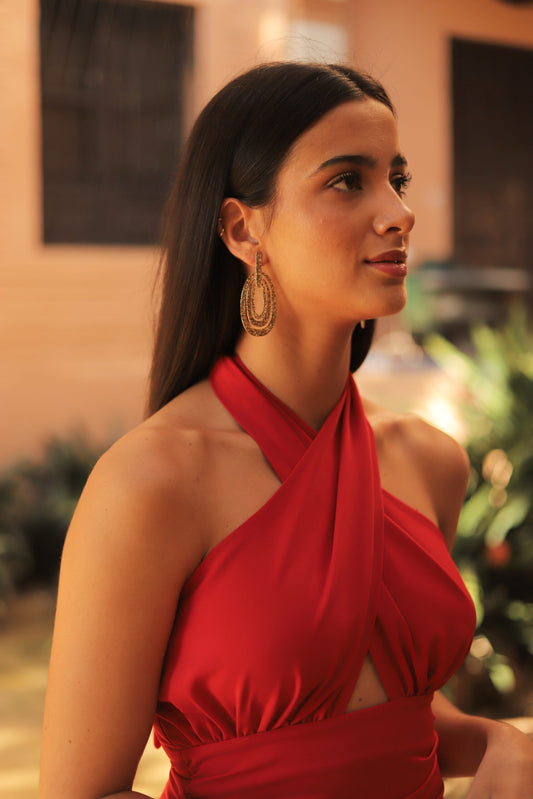 VESTIDO CUELLO HALTER ROJO