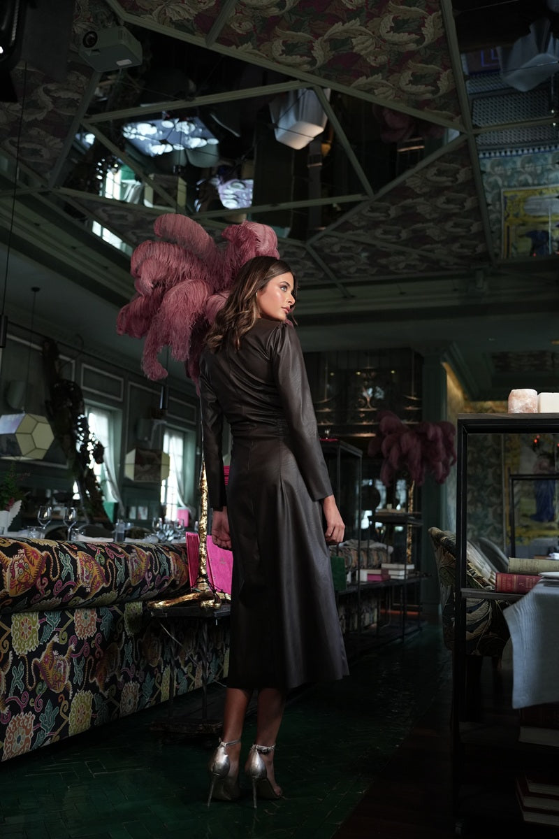 Este vestido drapeado con efecto piel está confeccionado con 90 % poliéster y 10 % elastano, ofreciendo un diseño elegante que se adapta a tu figura gracias a su ligera elasticidad. Su acabado moderno y sofisticado aporta un toque atrevido y llamativo, ideal para destacar en cualquier evento. Combina comodidad y estilo para que te sientas segura y radiante en cada ocasión.
