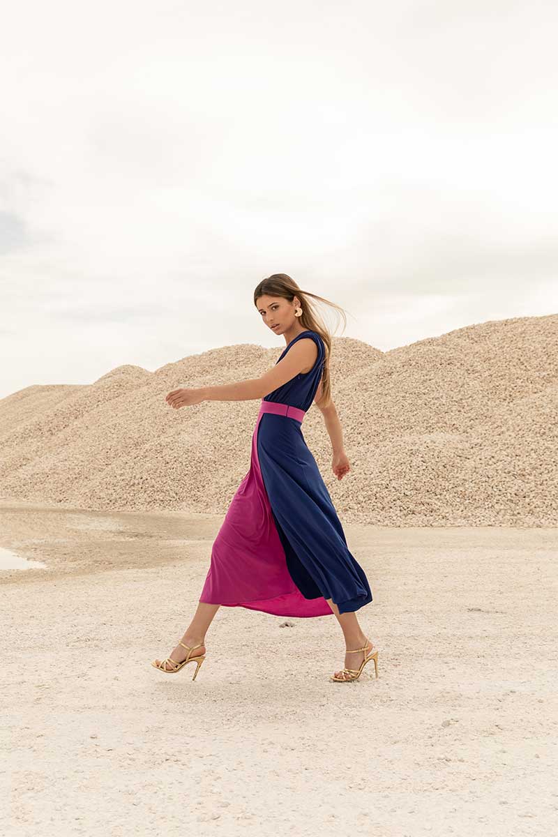 VESTIDO PUNTO BICOLOR MARINO/ORQUÍDEA